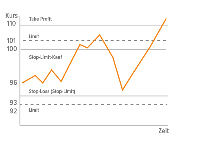 - Wird gleichzeitig eine Take-Profit-Order platziert, wird diese bei Erreichen des Stop-Limits gelöscht.