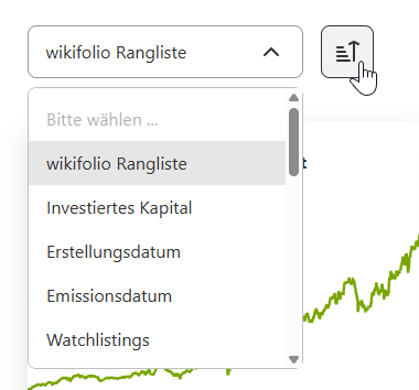 - Über die Sortierfunktion kannst du nach jeweils einer Kennzahl deiner Wahl absteigend oder aufsteigend sortieren, um so das wikifolio zu finden, das am besten für dich passt.
