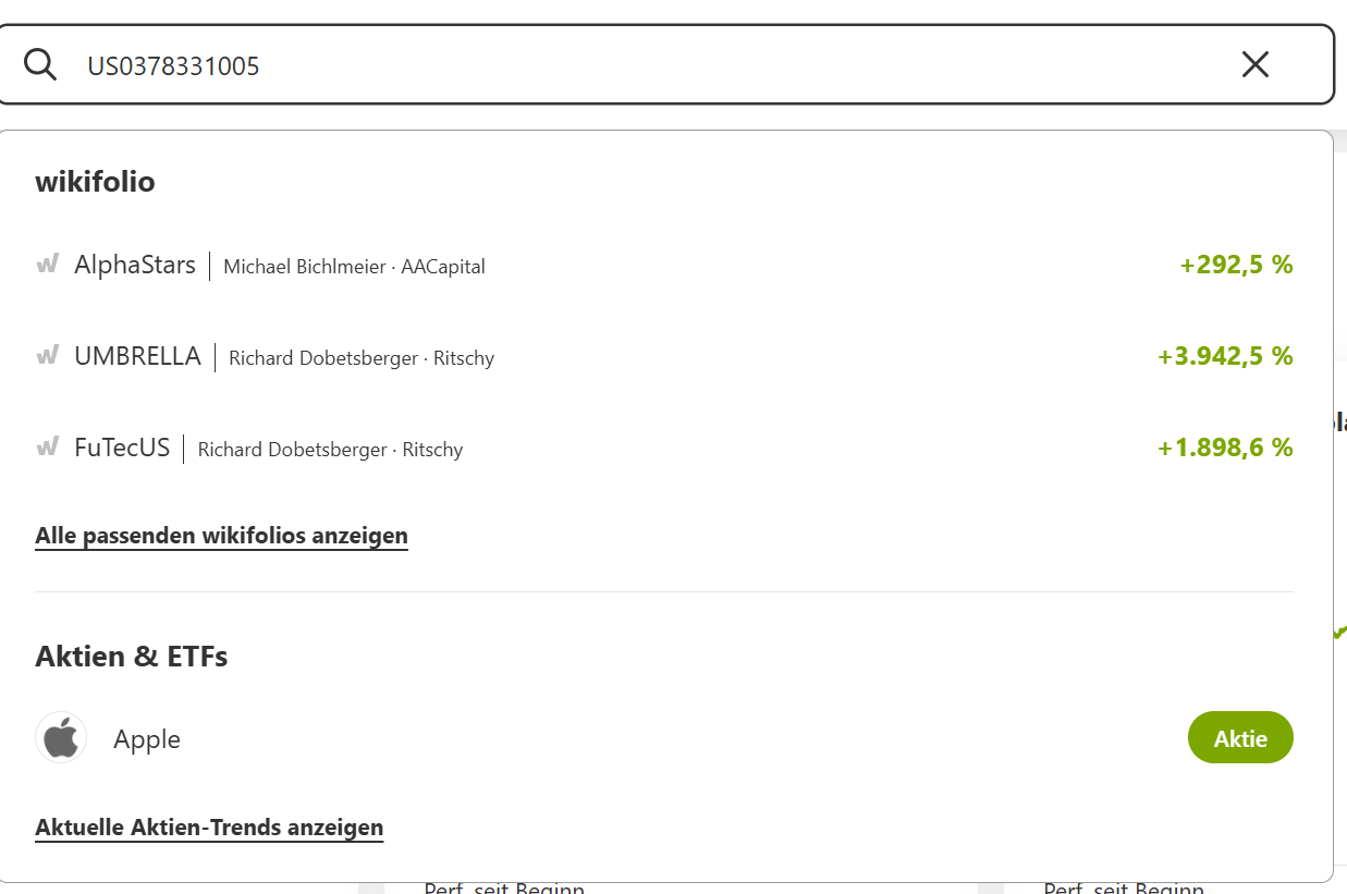 Öffnest du die wikifolio Suche, findest du standardmäßig
