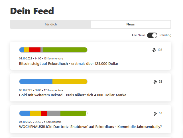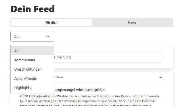 Der News-Feed liefert dir täglich über 100 aktuelle Finanz-News. Du kannst wählen zwischen: