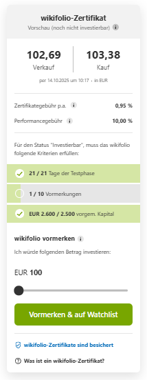 Im Status "Publiziert" ist ein wikifolio in der Suchfunktion auffindbar und registrierte wikifolio User können alle Details des wikifolios einsehen.