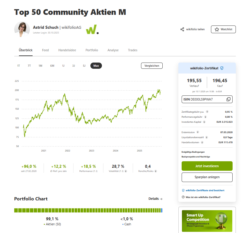 die Wertentwicklung des wikifolios seit dem genannten Zeitpunkt/Datum |